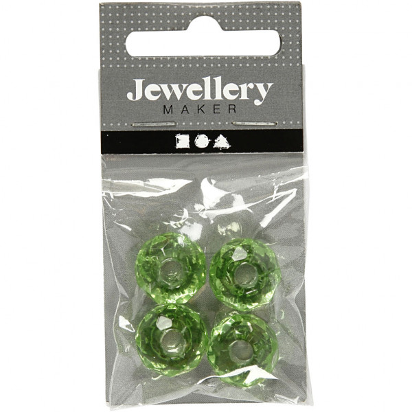 Breloques à facettes, dim. 9x14 mm, diamètre intérieur 4 mm, 4 pièces, vert [HOB-68946]