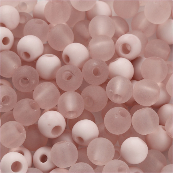 Perles en plastique, d: 6 mm, la taille du trou 2 mm, rose, 40gr, env. 150 pièce [HOB-69591]