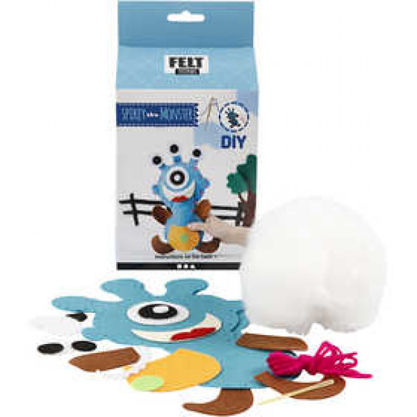 Contenu : 1 figurine découpée dans du feutre polyester et des pièces adhésives en feutre pour décorer, du rembourrage, du fil et et une aiguille pour la couture. Instructions sur l'emballage.