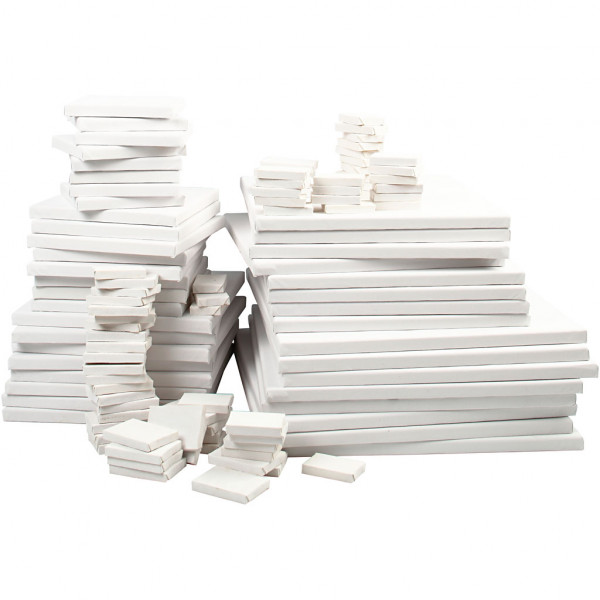Contenu: 200 toiles de 7.5x5cm, 20 toiles de 15x15 cm, 20 toiles de 18x24 cm, 20 toiles de 24 x30 cm, 20 toiles de 30 x 30 cm, 20 toiles de 30 x 40 cm.