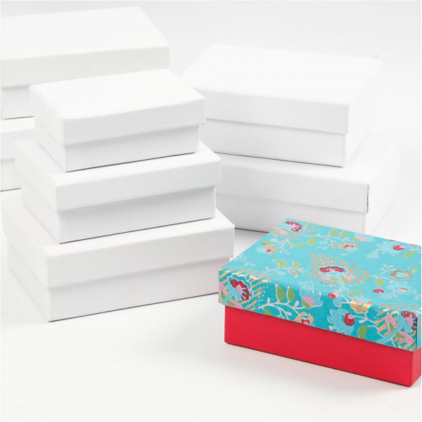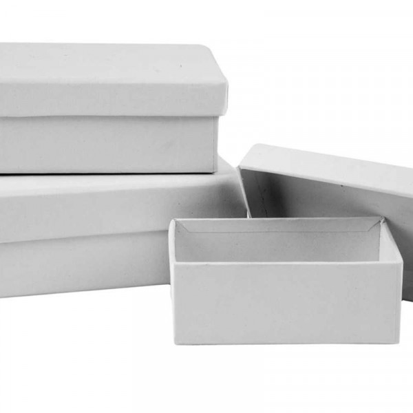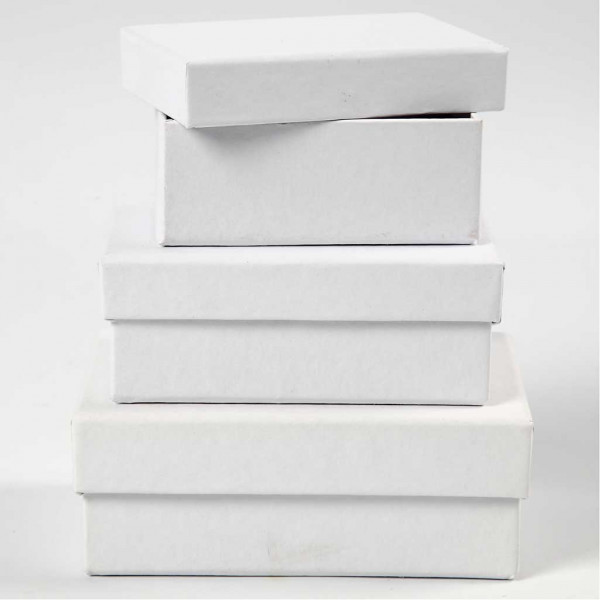 Boîtes rectangulaires, L: 8,5+10+12 cm, l: 6+7+9 cm, blanc, 18pièces, h: 4,5 cm [HOB-26415]