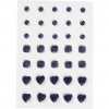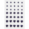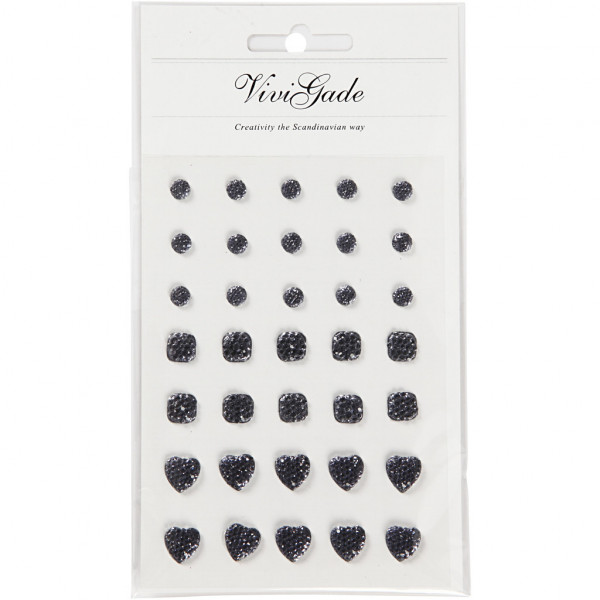 Pierres de strass autocollantes de chez Vivi Gade. Toutes ont une face antérieure en relief et un dos plat sur des feuilles avec 3 formes (rond, carré, coeur).