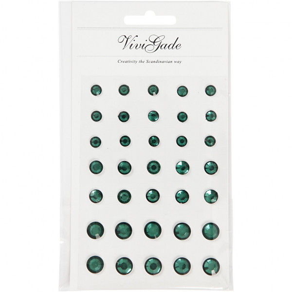 Pierres de strass autocollantes de chez Vivi Gade. Toutes ont une face antérieure en relief et un dos plat sur des feuilles avec 3 formats.