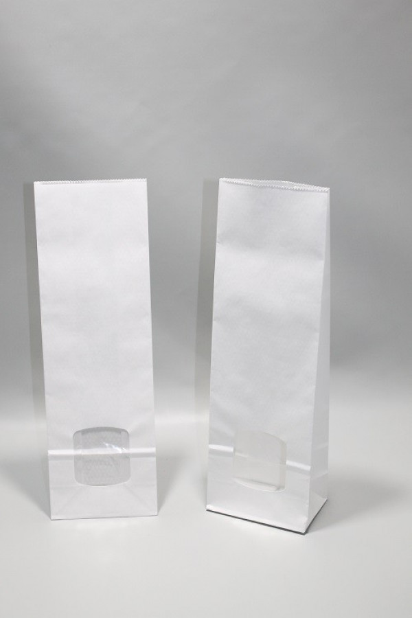 Sac à fond carré en papier kraft blanchi 80g/m2 et fenêtre transparente 30 microns (contenance 1Kg) 10.5x6.5x33cm (100 pièces) [PAB1013]