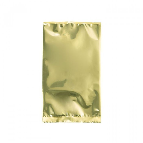 Mesurant 9.5x16 cm, ce sachet plat en or métallisé est idéal pour emballer des aliments comme des poudres, des épices, des barres de céréales, des fruits, du café et bien plus encore! Ce sachet est ouvert sur le dessus pour un remplissage facile et a un joint inférieur de 1.3 cm pour plus de solidité. Encoches de déchirures aux deux extrémités pour plus de commodité une fois scellées á chaud. Ce sachet en or métallisé offre une grande herméticité et protège contre les rayonnements UV et humidité.