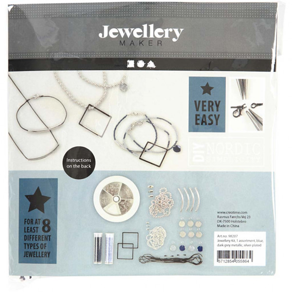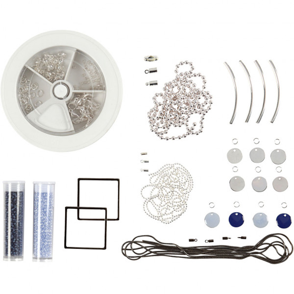 Set de bijoux, 1 ass., bleu, gris foncé métallique, argenté [HOB-98207]