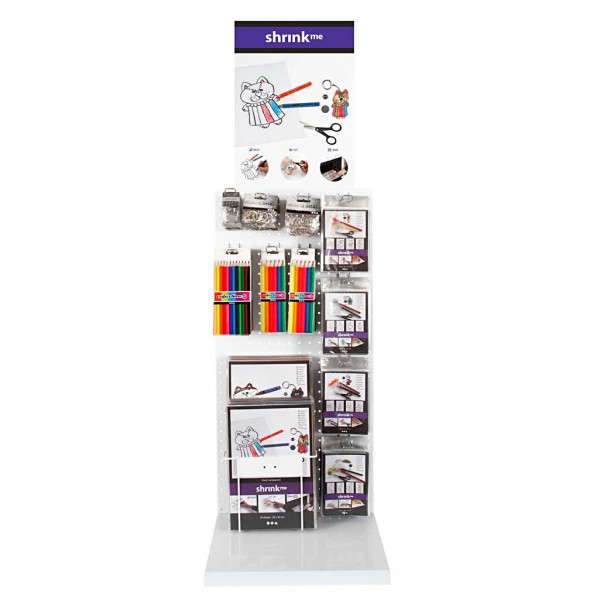 Contenu: 80 paquets assortis de plastique thermoréctractable avec motifs, 20 feuilles de plastique thermo-réctractable, 20 paquets de porte-clefs et 24 paquets de feutres assortis.