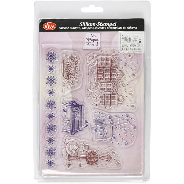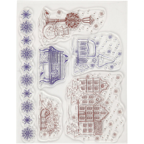 Feuilles avec différents motifs en silicone transparent. Appliqué sur un bloc en acrylique (article no 24010 et 24009) et utilsé comme tampon.