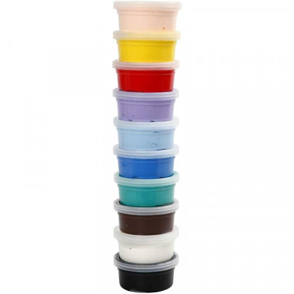 Assortiment de pâte à modeler autodurcissante souple, douce et légère, qui conserve sa structure douce et caoutchouteuse une fois sèche.