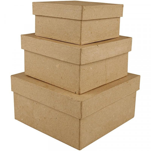 Boîtes carrées faites main en papier mâché - set de 3 pièces.
