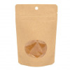 Reduce your impact on the environment with this eco-friendly Kraft Stand Up Pouch. The ZBGEO2K pouch measures 10.2 x 6 x 15.2 cm and holds 57 g. Package snacks, candy, mixes, nuts, and more. This pouch has a high moisture and oxygen barrier to keep products fresh. The 125 micron pouch is made of 65 gsm kraft paper and has tear notches and a round hang hole for retail. The inner lining is derived from plant-based material (PLA) and includes a clear ALOX coating, allowing this package to have high barrier properties and made from 100% compostable materials.