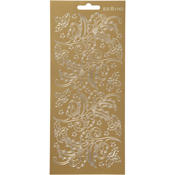 Autocollants, feuille 10x23 cm, or, houx, 1flles [HOB-170252]