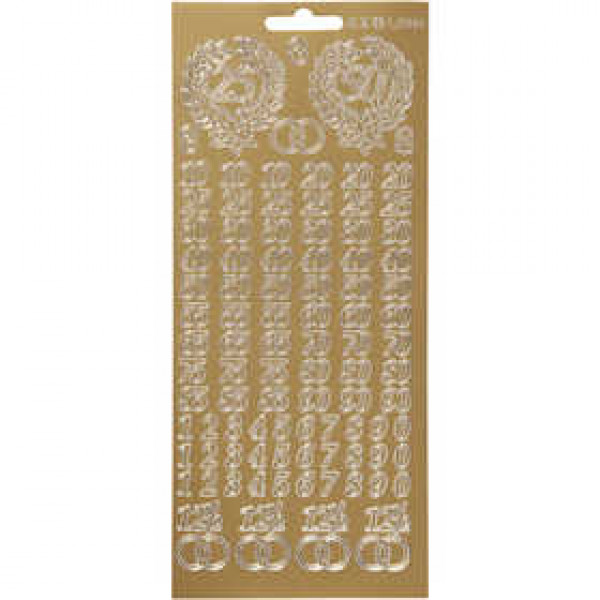Autocollants, feuille 10x23 cm, or, chiffres de célébration, 1flles [HOB-170216]