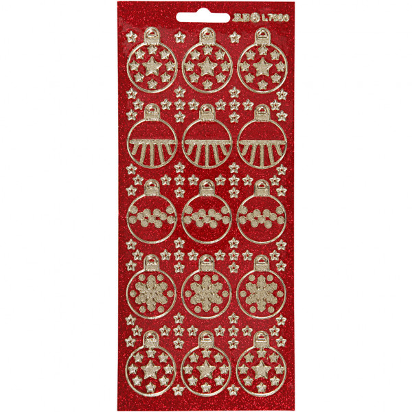Autocollants, feuille 10x23 cm, or, glitter rouge, boules de Noël, 1flles [HOB-170051]