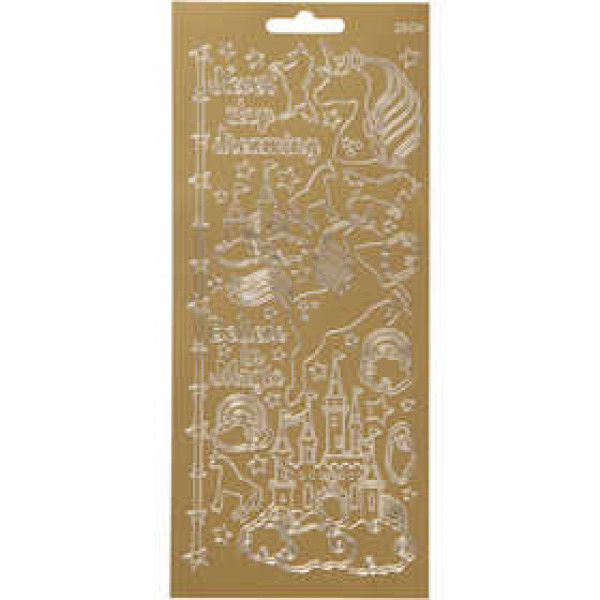 Autocollants, feuille 10x23 cm, or, licorne, 1flles [HOB-170258]