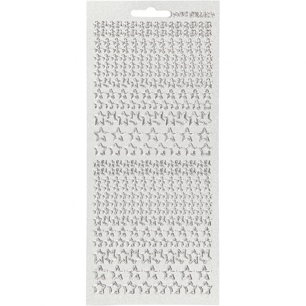 Autocollants, feuille 10x23 cm, perlemor sølv, argent, étoiles, 1flles [HOB-170113]
