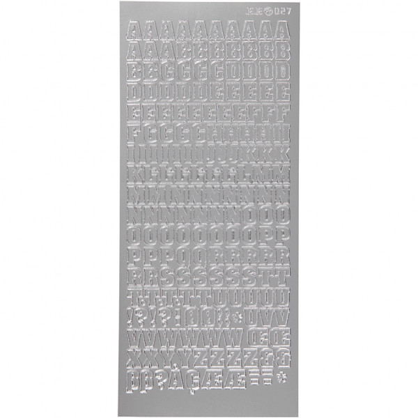 Autocollants, feuille 10x23 cm, argent, alphabet, 1flles [HOB-170215]
