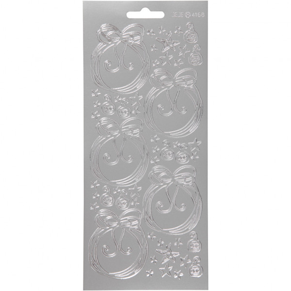 Autocollants, feuille 10x23 cm, argent, boules de Noël, 1flles [HOB-170199]