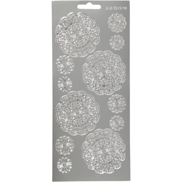 Autocollants, feuille 10x23 cm, argent, fleurs, 1flles [HOB-170096]