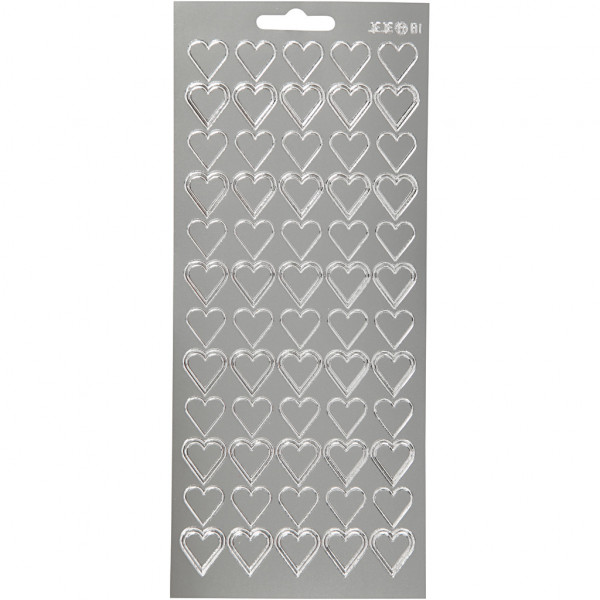 Autocollants, feuille 10x23 cm, argent, coeurs, 1flles [HOB-170020]