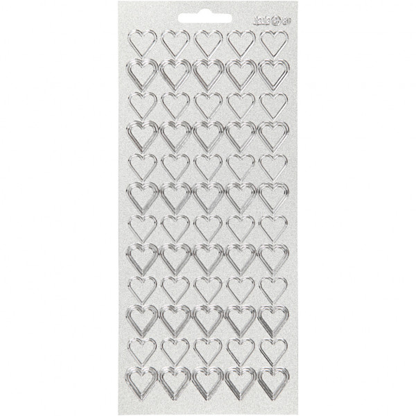Autocollant, feuille 10x23 cm, argent, coeurs, 1flles [HOB-170018]