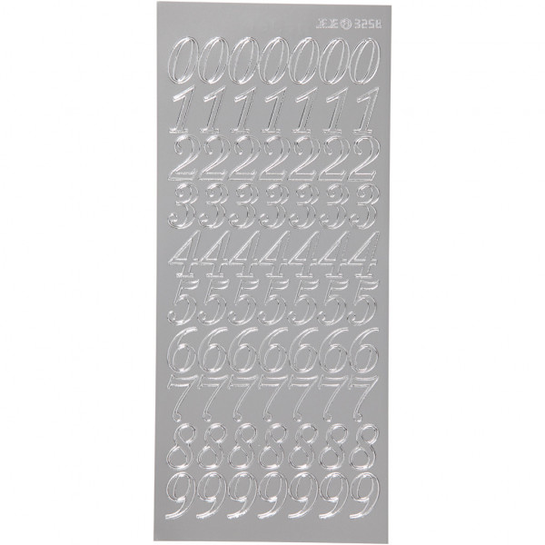 Autocollants, feuille 10x23 cm, argent, chiffres, 1flles [HOB-170223]