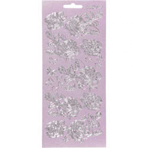 Autocollants, feuille 10x23 cm, argent, perlemor pink, roses, 1flles [HOB-170163]