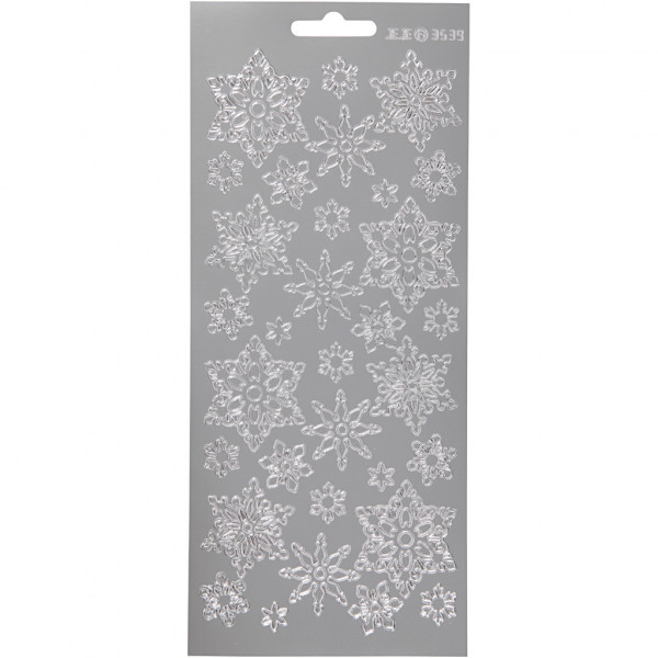 Autocollants, feuille 10x23 cm, argent, flocons de neige, 1flles [HOB-170145]