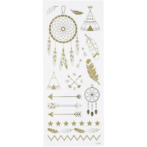 Autocollants Indiens, feuille 10x24 cm, env. 17 pièce, or, indiens, 1flles [HOB-29145]