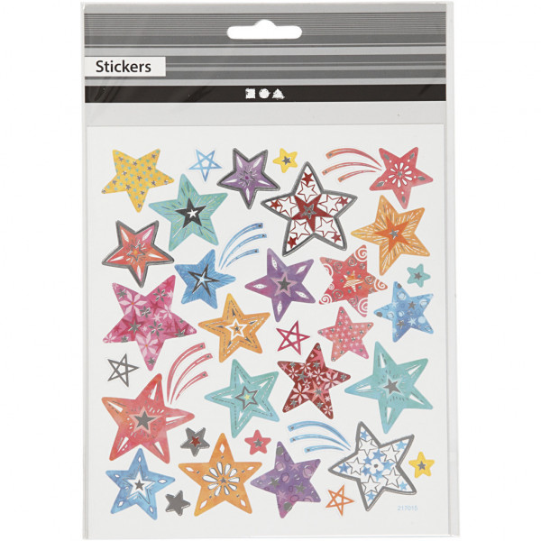 Autocollants étoiles, feuille 15x16,5 cm, env. 31 pièce, étoiles, 1flles [HOB-29122]