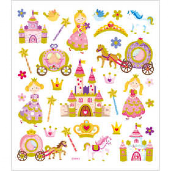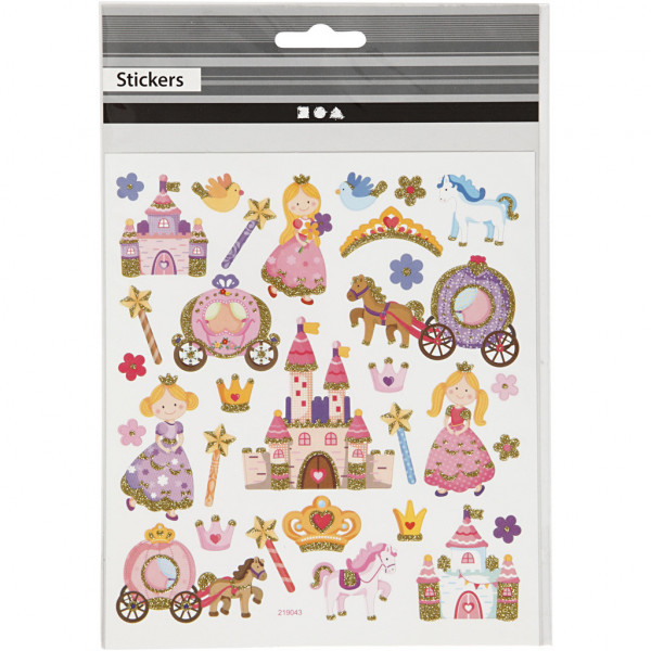 Autocollants sur feuille fine en plastique avec des détails en laque scintillante colorée.