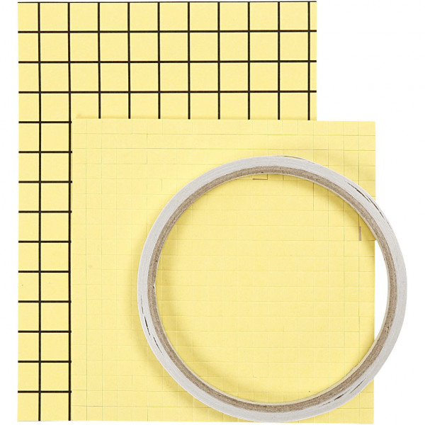 Assortiment de doubles-faces: bande adhésive, feuilles et 3D foam pads.