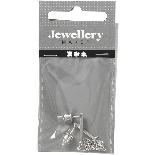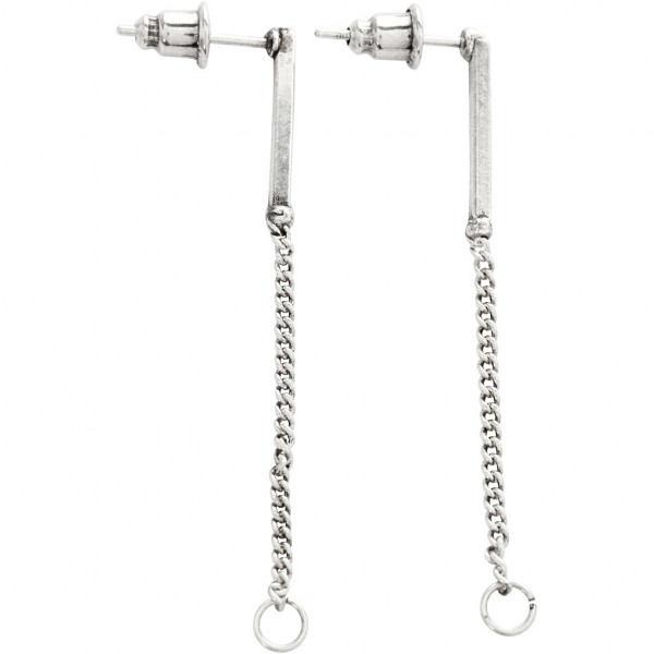 Boucles d'oreille avec une barre métallique et une chaîne sur l'avant, qui se ferme derrière. Le chaîne possède un oeillet dans lequel le pendentif peut être monté.