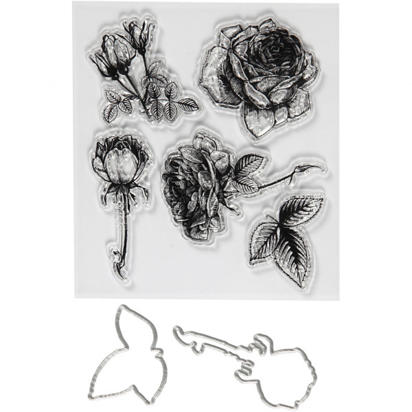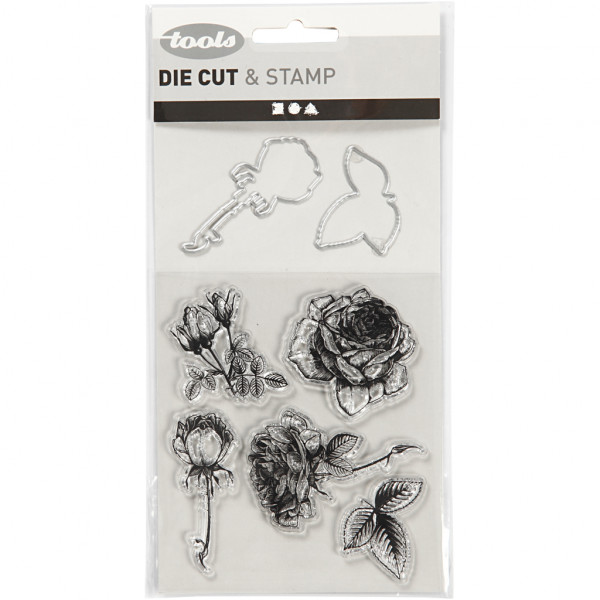 Contenu: 14 tampons, un modèle de gaufrage et 6 gabarits de coupe.