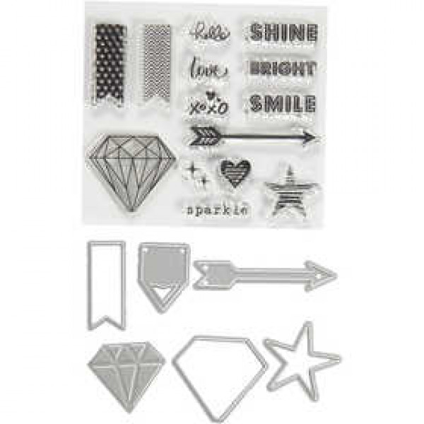 Tampons transparents, gabarits de coupe et de gaufrage, dim. 1,5-6 cm, 1 Pq. [HOB-117481]