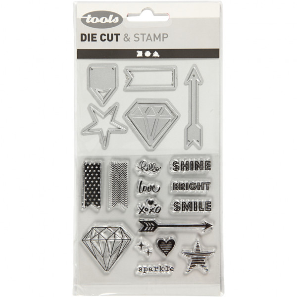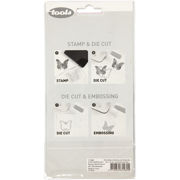 Contenu: 14 tampons, un modèle de gaufrage et 6 gabarits de coupe.