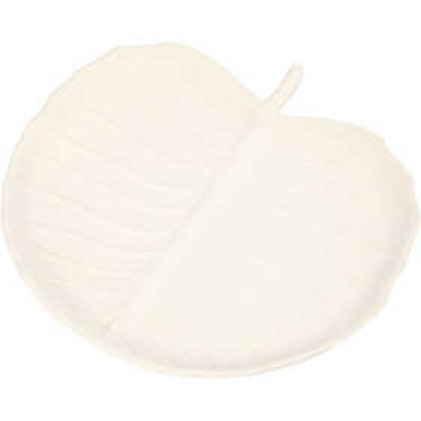 Plateau en terre cuite, feuille de lotus, dim. 17,5x18,5 cm, h: 2 cm, blanc, 1pièce [HOB-55509]