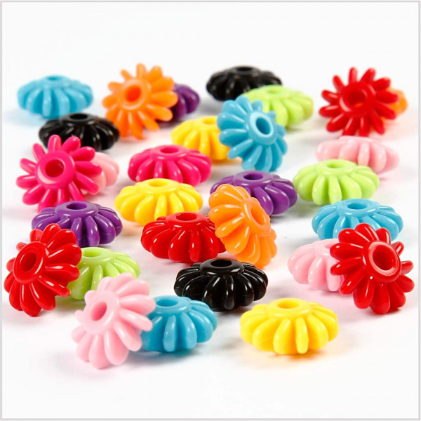 Perles roues dentelées en plastique. 9 couleurs assorties.