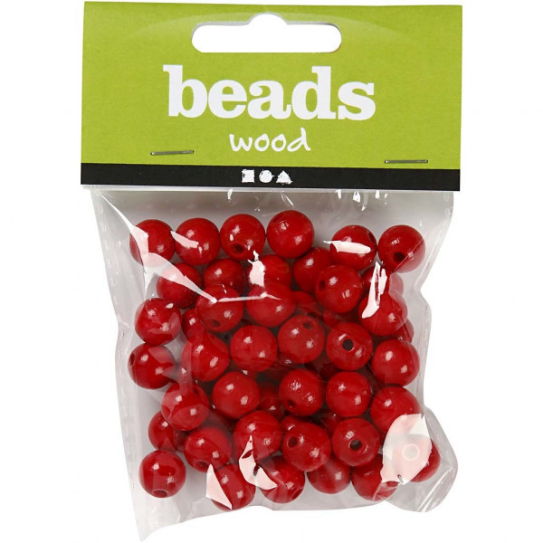 Perles en bois, d: 12 mm, la taille du trou 3 mm, rouge, 22gr, env. 40 pièce [HOB-570414]