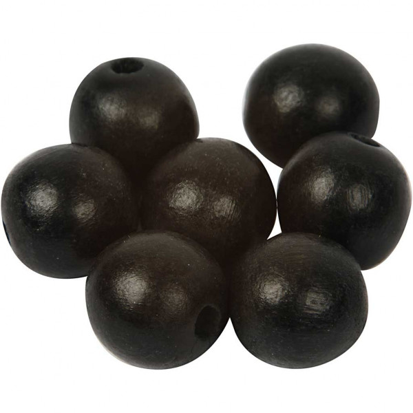 Perles en bois, d: 14 mm, la taille du trou 2 mm, noir, 55pièces [HOB-57120]