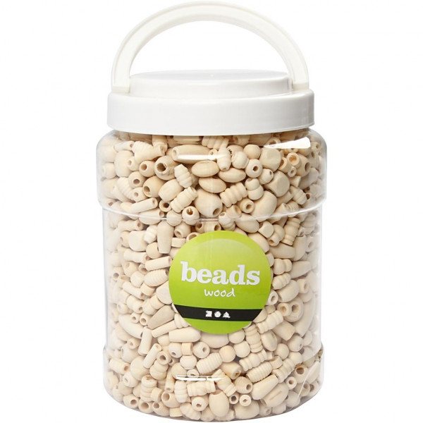 Perles en bois de taille moyenne. Livrées dans un seau en plastique.