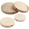Bouton plat en bois avec un trou qui traverse le centre.