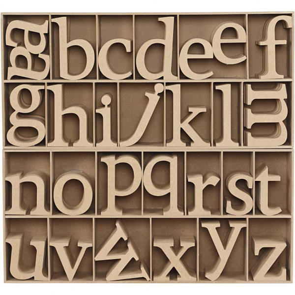 Lettres en bois, Présentoir en bois inclus, h: 8 cm, épaisseur 2 cm, MDF, 112pièces [HOB-56266]