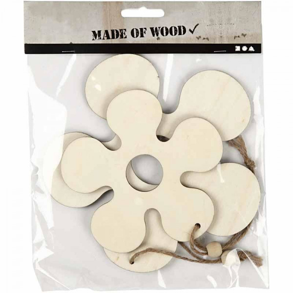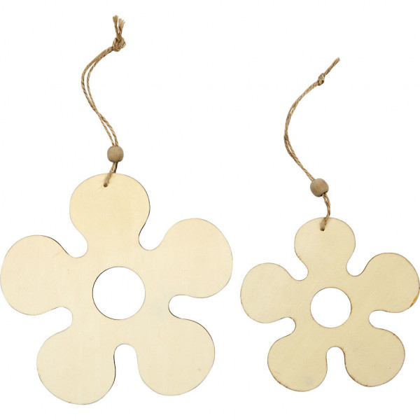 Décorations en bois, fleur, d: 12,3+16,5 cm, épaisseur 5 mm, 2pièces [HOB-56738]