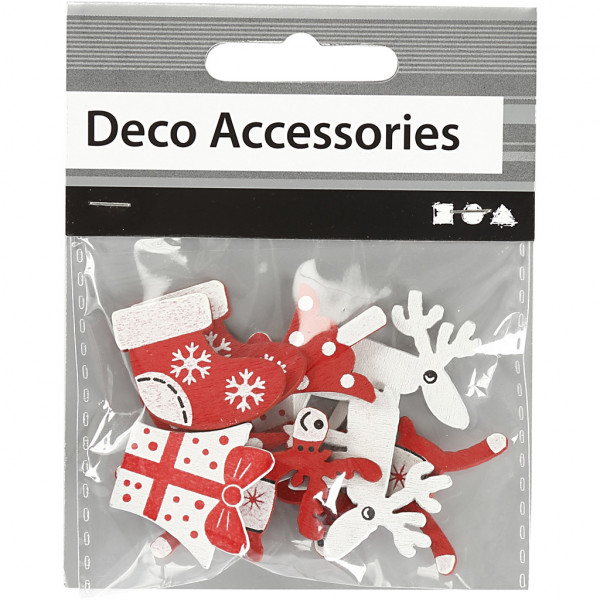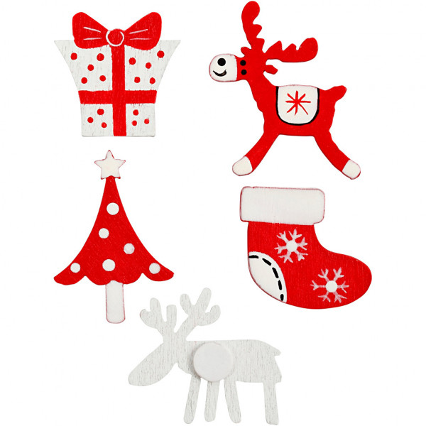 Autocollants en bois, dim. 25-30 mm, Noël, 10assortis [HOB-580390]