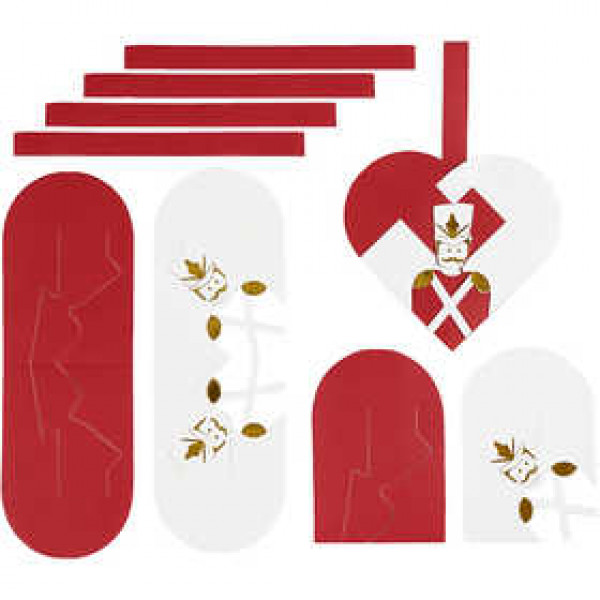 Coeurs tissés, dim. 12,5x11,5 cm, 120 , blanc, or, rouge, casse-noisette, 8sets [HOB-25347]