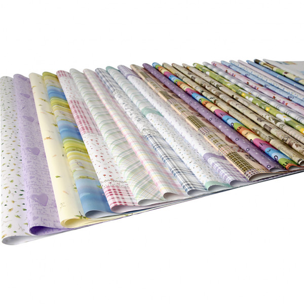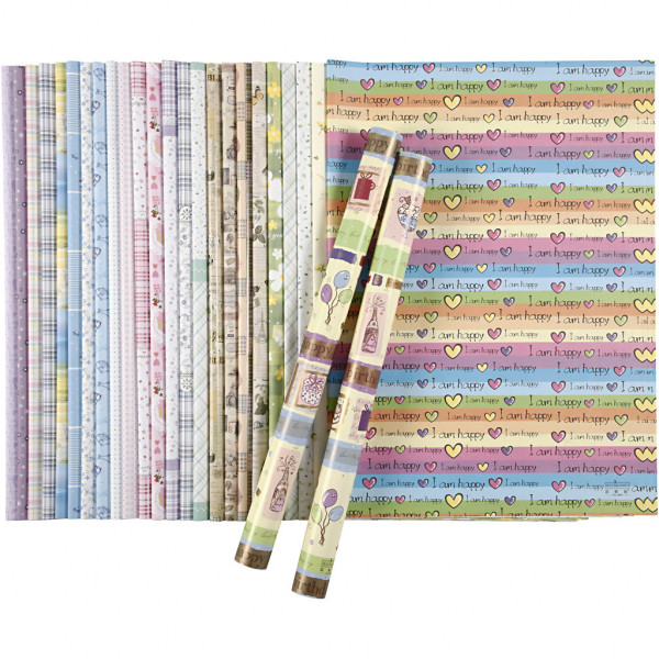 Papier cadeau, feuille 52x75 cm, 80 gr, 50flles. ass. [HOB-19968]