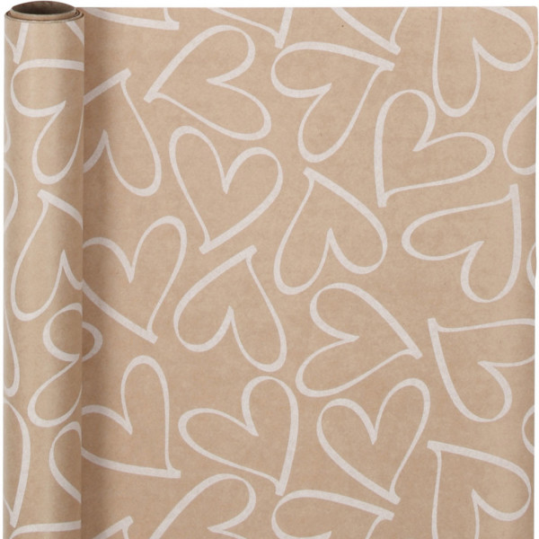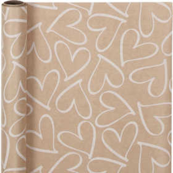 Papier cadeau rustique de qualité supérieure avec coeurs blancs.