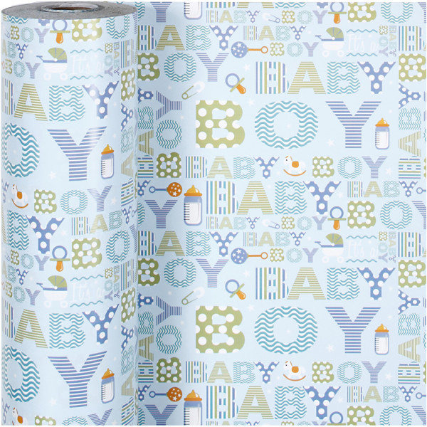 Papier cadeau, l: 50 cm, 80 gr, baby boy, 150m [HOB-19042]